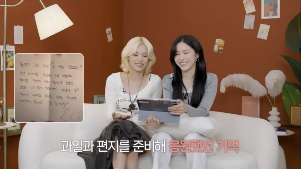 イェジが話していたデビュー前に出演したサバイバル番組「The Fan」での準備中の出来事。準備のため秋夕に帰れないイェジのためにリュジンが予定を早めて、実家のチヂミを持って駆けつけた話。イェジは以前もこのエピソードでリュジンへの感謝を話していました。